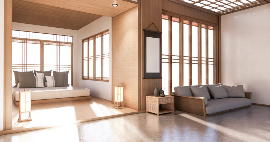 和の趣向を取り入れたモダンな部屋で、